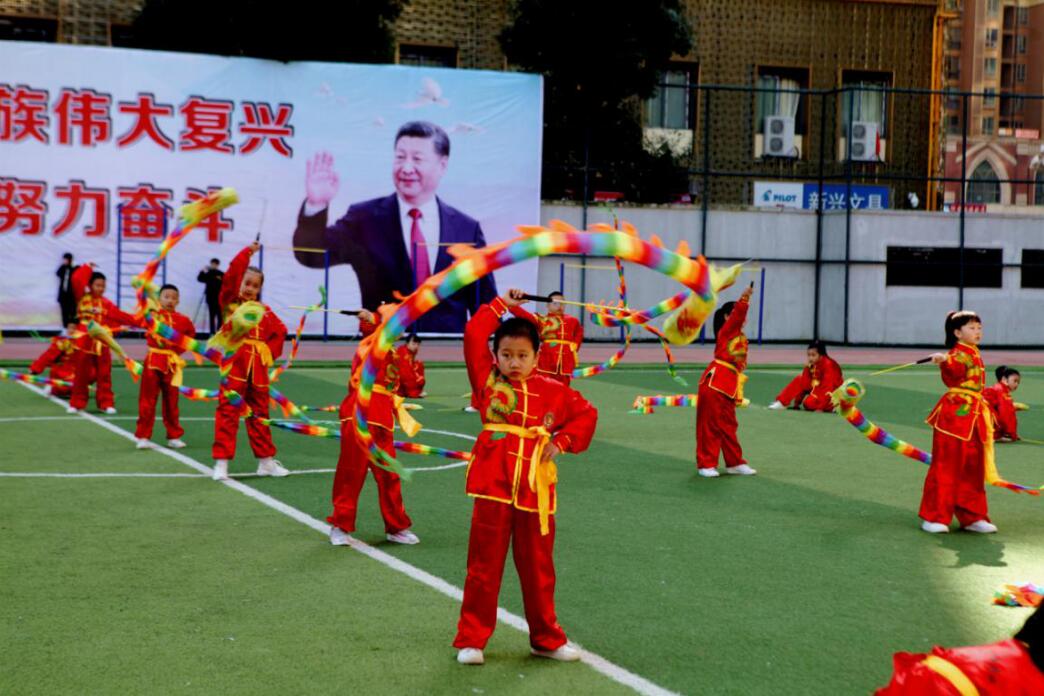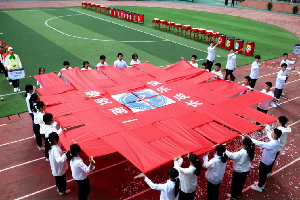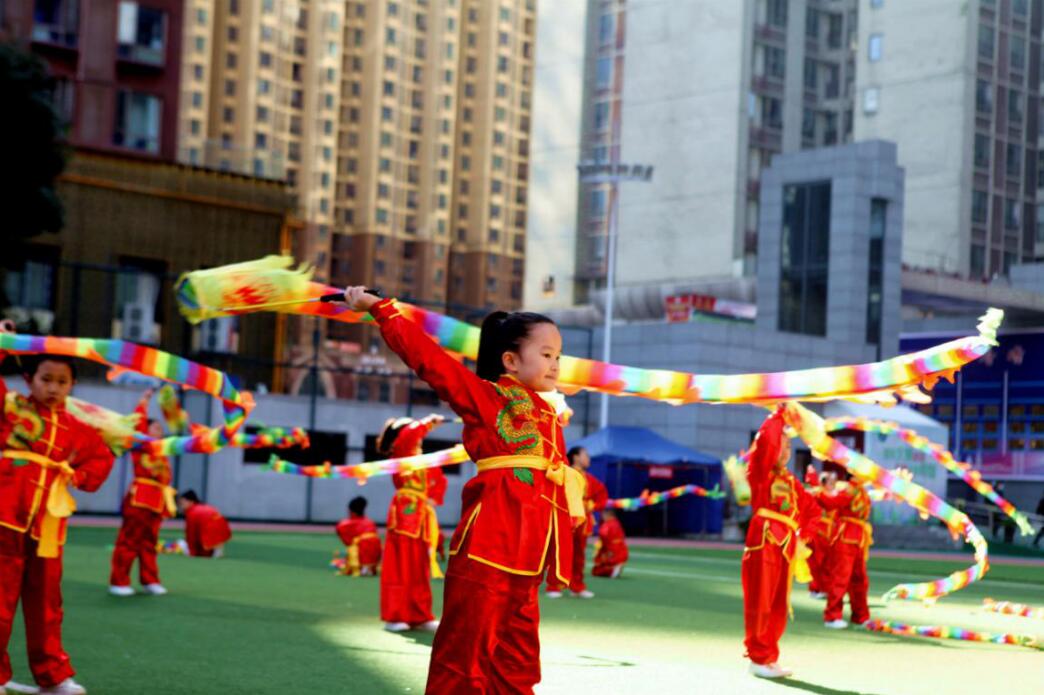 先后出场的由师生共同演绎的旗鼓舞功夫扇《中华好儿女》,花果园第三小学学生表演的《空竹龙展示——龙舞盛世》,融合啦啦操、篮球、足球、跳绳为一体的《花样炫年华》,融合汉族、苗族、彝族、蒙古族、维吾尔族五个民族元素为一体的《民族一家亲》等节目将开幕式推向高潮。