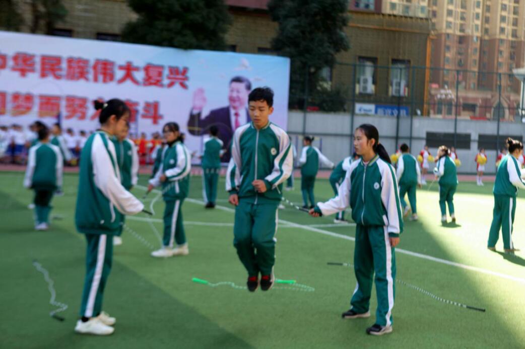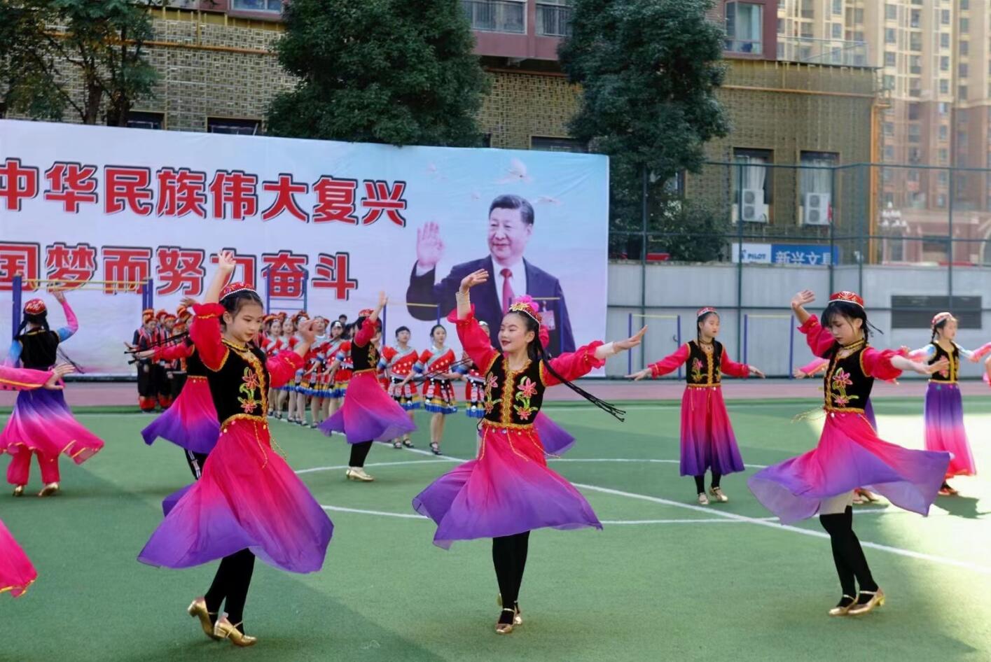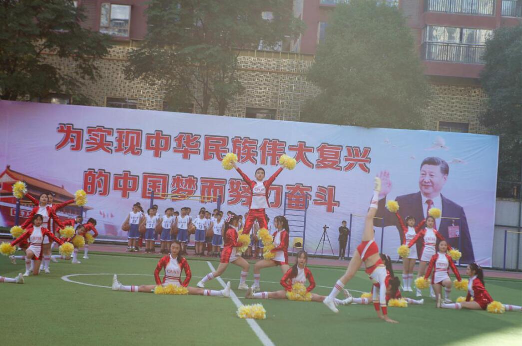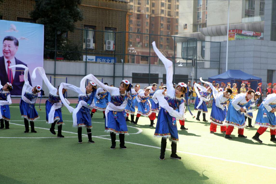 (融合啦啦操、篮球、足球、跳绳为一体的节目《花样炫年华》表演现场) (融合汉族、苗族、彝族、蒙古族、维吾尔族五个民族元素为一体的节目《民族一家亲》表演现场)