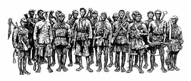 16名突击队员就要征战了!总参谋长刘伯承亲自给16名壮士送行鼓劲,只见16名战士雄赳赳气昂昂地站成一排,每个人身上捆着手榴弹,端着机关枪,背后挎着大刀。