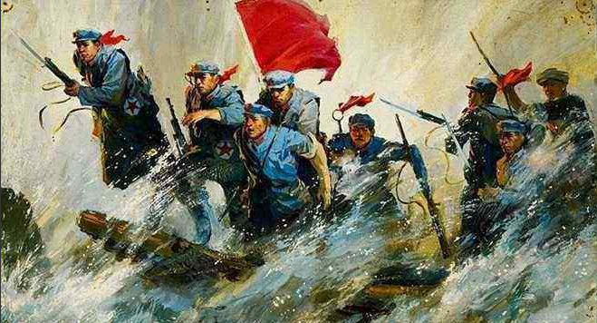 在嘹亮的冲锋号中,小船乘风破浪,驶过河流,抵达对岸……