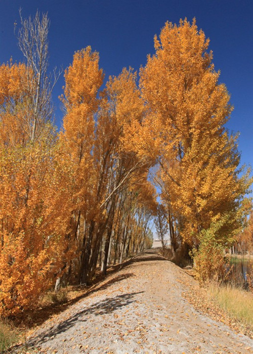 远远望去,在秋日的暖阳下,金灿灿的树叶给戈壁旷野带来了一片生机,增添了一道靓丽的景色。我情不自禁地脱口而出:哇,好美啊!看着那一排排身披“金色”秋装的白杨,直上云霄的挺立在旷野之中,感受它如今的冷清和依然孤立在戈壁的风景,体会它用独特的视角见证油田的发展,欣赏它不为孤独而枯萎的精神。这就是情人林,默默地坚守在高原油田的一方热土上。