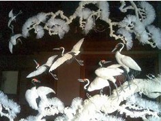 且说左靖师徒接到任务后,左靖以画家的目光审视来自吴越大地上的工艺品。他幼年生活在扬州,对苏州的彩绘平贴通草堆画,应该不会陌生。他先将通草片着上工笔彩绘,制成刻片,再平贴在画框中,一帧彩绘平贴就完成了。艺术家就是艺术家。左靖认为他还没有尽兴,他们还可以把堆画堆得更好。他在充分剖析苏州样品和其它堆画(如沈阳羽毛堆画)的结构和层次特点之后,进行大胆创新,由平贴而堆贴,变彩绘为素堆,创制出具有立体感强烈的高浮雕型的堆画新品——遵义通草堆画。
