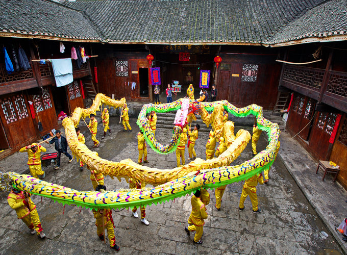 大院门窗雕花精致细腻,种类繁多,有双凤朝阳、犀牛望月、仙女散花、喜鹊闹梅,狮子跳楼台,还有历史故事、神话传说、民俗风情等。这些雕花,多以梵净山地区丰富、独特的民间文化为蓝本,而进行的艺术再创作。形象生动,表情丰富,充分展示了工匠们精湛的手工艺和无与伦比的想象力。