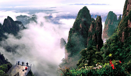 远黛苍茫霞彩照,近蓝葳蕤日虹娇。