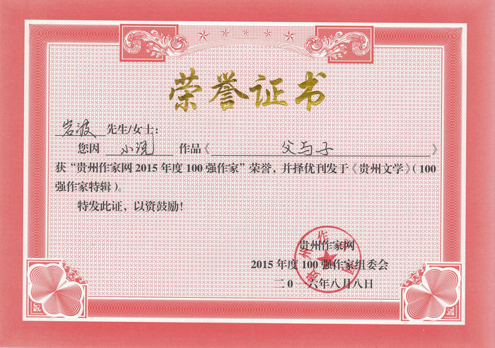 文学赛事,向来无完美评选方式。作品质量,亦无绝对评判标准。然而,唯有读者最具发言权。是故,几度酝酿、几经周折,贵州作家网-《贵州文学》编辑部举办的“2015年度100强作家”评选活动姗姗揭晓、《贵州文学》(贵州作家网“2015年度100强作家”特辑)艰难面世。