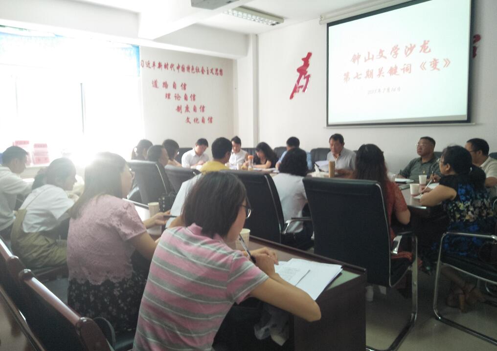 7月14日下午,六盘水市钟山文学沙龙第7期同题《变》作品讨论活动在钟山区政府大楼423会议室举行。钟山文学沙龙15名会员及5名文学爱好者参与了此次活动。