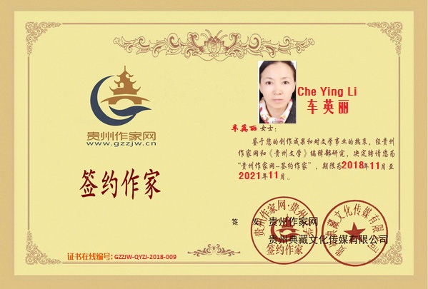 2018年11月2日,四川省攀枝花市女作家车英丽成功签约贵州作家网。