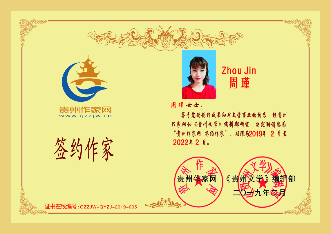 2019年1月30日,安徽省青年女作家周瑾成功签约贵州作家网。