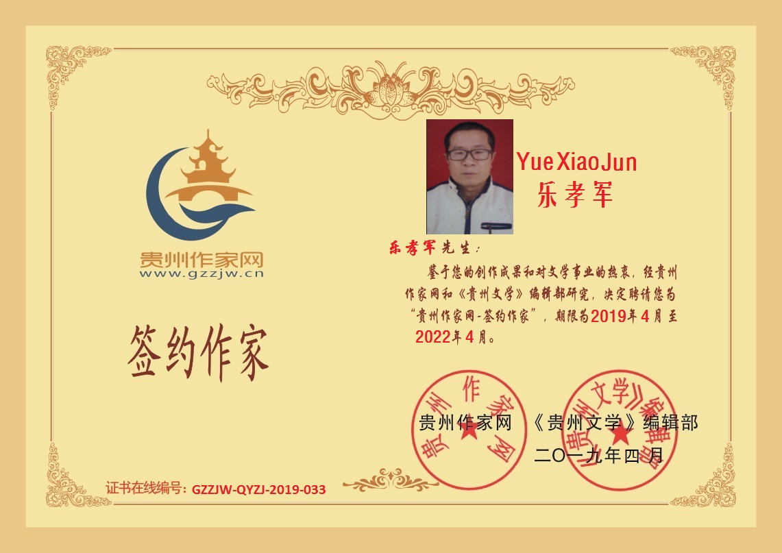 2019年4月3日,湖北省作家乐孝军成功签约贵州作家网。