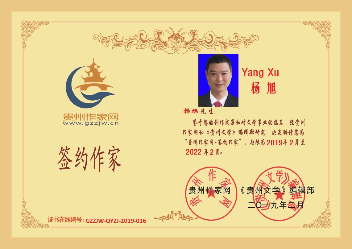 2019年2月27日,贵州土家族作家杨旭成功签约贵州作家网。