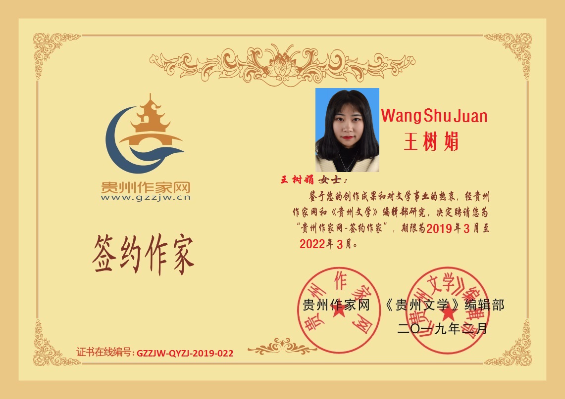 2019年3月3日,贵州青年女作家王树娟成功签约贵州作家网。
