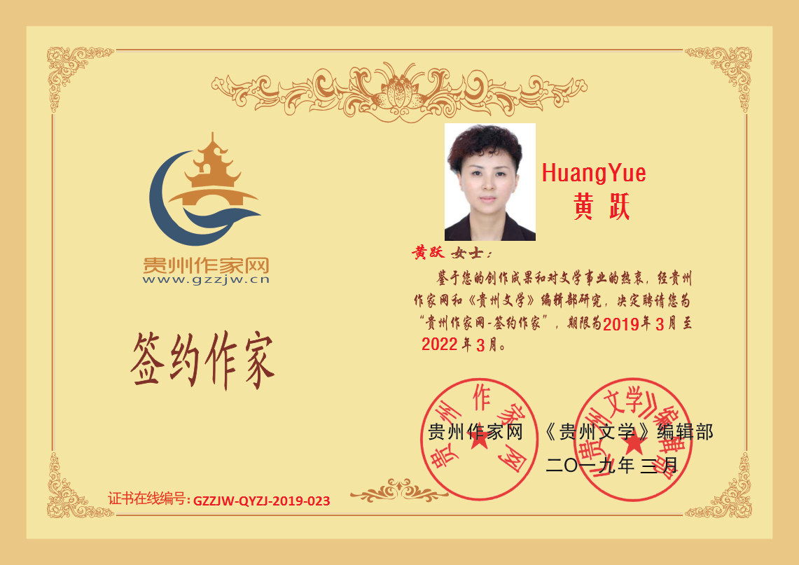 2019年3月3日,贵州土家族女作家黄跃成功签约贵州作家网。
