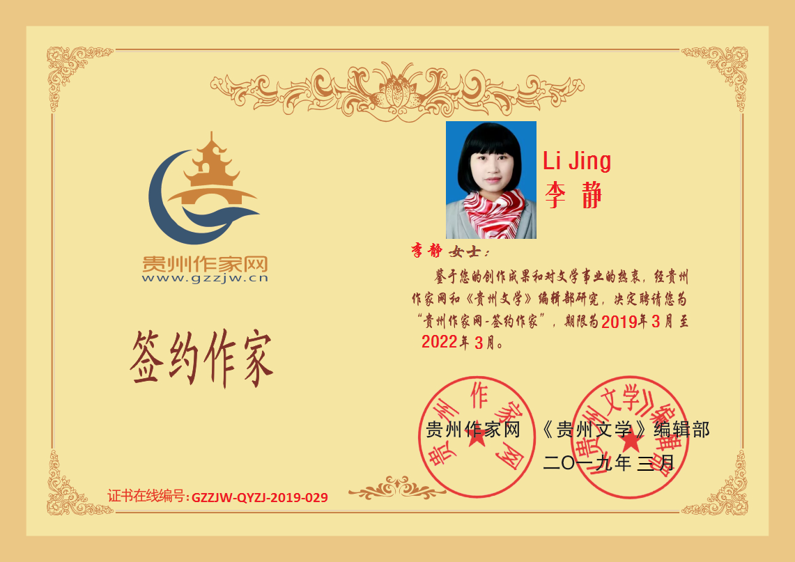 2019年3月16日,贵州穿青女诗人李静成功签约贵州作家网。