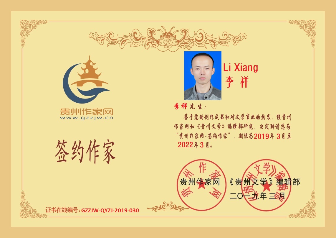 2019年3月17日,贵州穿青诗人李祥成功签约贵州作家网。