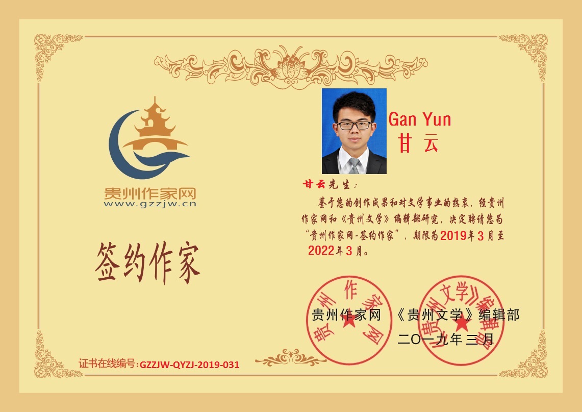 2019年3月20日,贵州青年作家甘云成功签约贵州作家网。