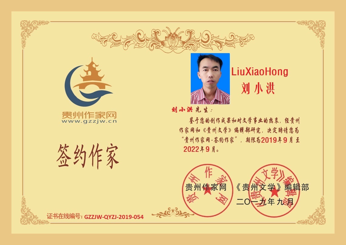 2019年9月1日,贵州作家刘小洪成功签约贵州作家网。