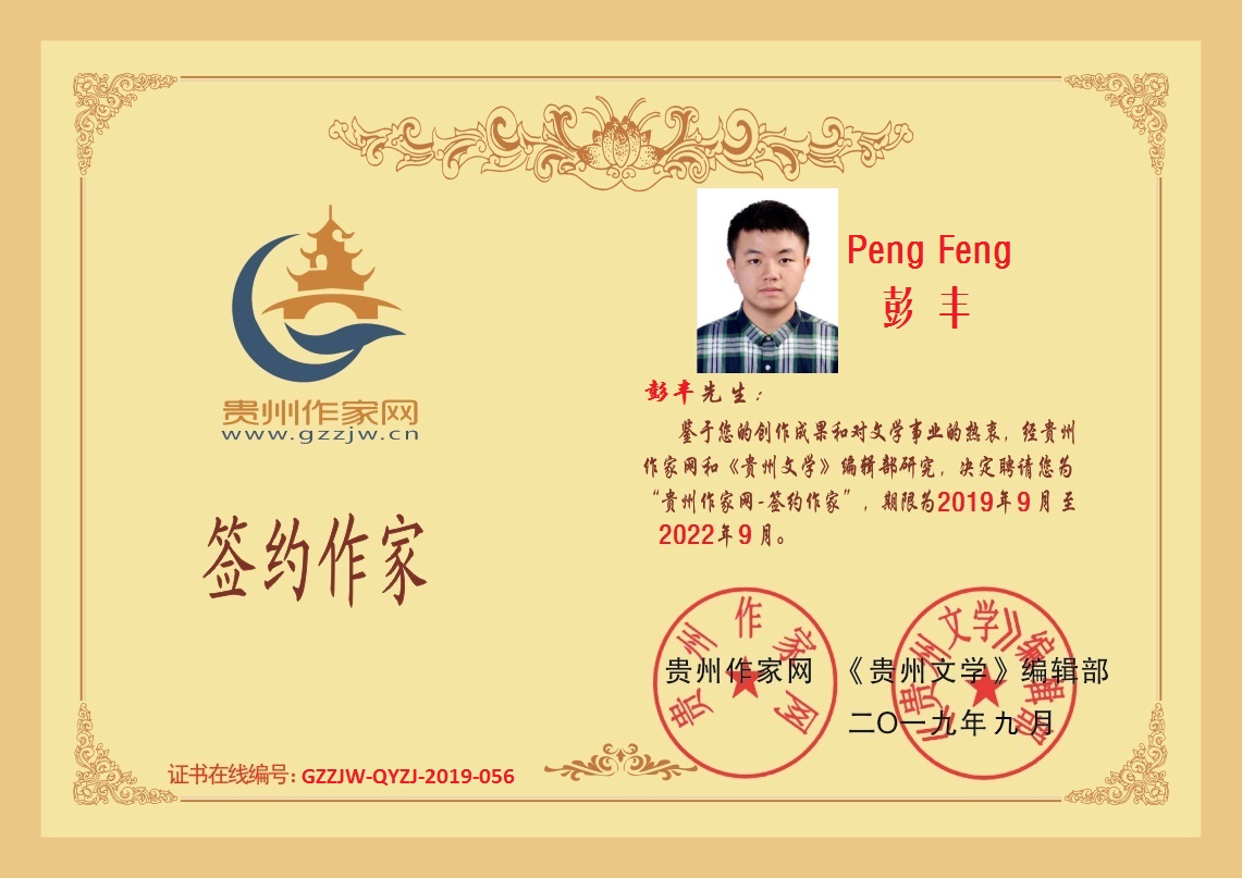 2019年9月1日,贵州青年诗人彭丰成功签约贵州作家网。