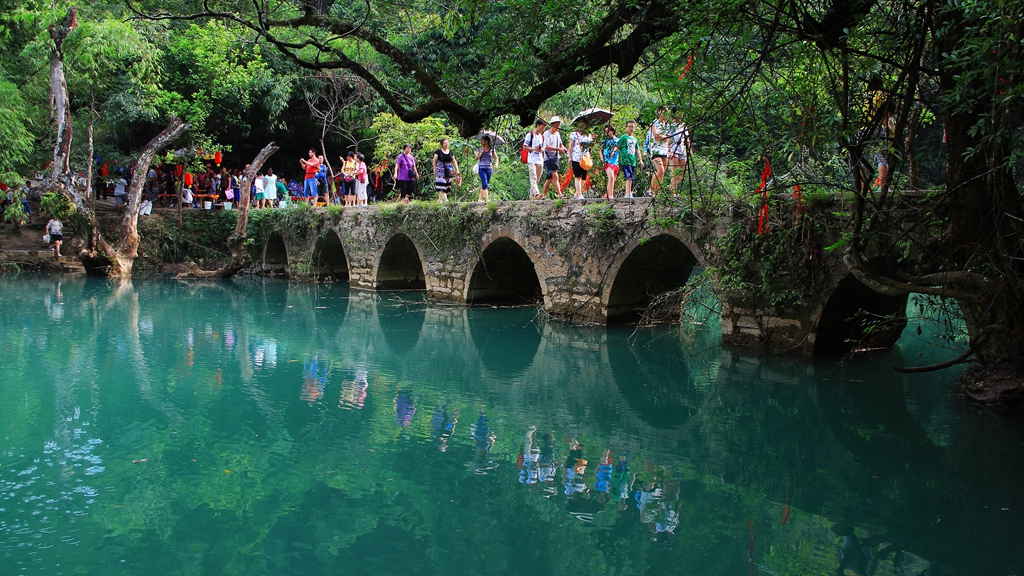 第二次我回老家的时候,我都上小学了,那是二零一六年的清明节。一进村子,到处都是挖掘机、拉土车,到处都是灰尘,我还以为我们走错村子了。原来,大家都知道老家这里有个小七孔,风景非常美丽,所以要开发这里,让更多的人来参观。这里正在拆迁,工程队就住在叔叔家里,我叔叔一家每天都忙着给工程队做饭。