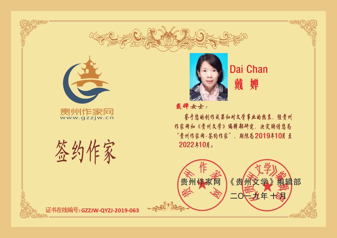 2019年10月10日,湖南女作家戴婵成功签约贵州作家网。