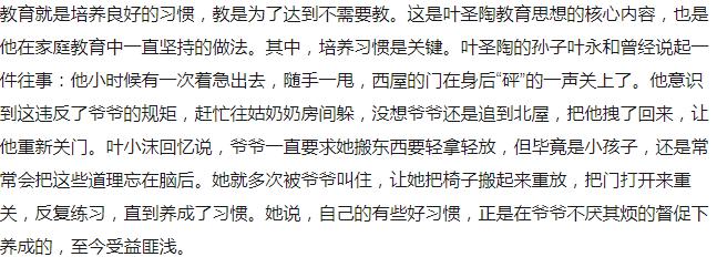 进进出出时,没有让门发出声响,哪怕风大。我得为他人着想,用鞋子先把门抵住了,门就不会“啪”地一声合上。曾经对你说过教育家叶圣陶是如何手把手地教孙女开关门的,下面是截图: