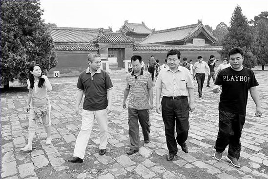 知名作家汪国真(右二)等一行在我省清东陵景区参观。
