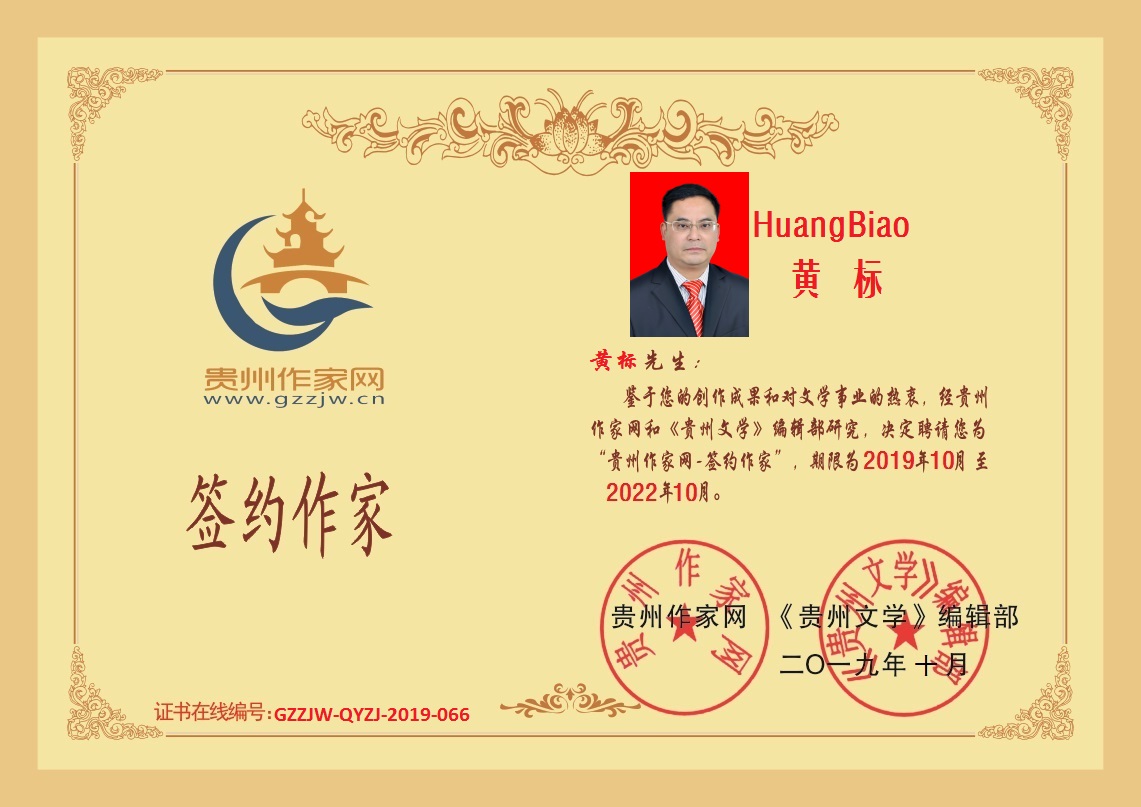 2019年10月17日,湖南省作家黄标成功签约贵州作家网。