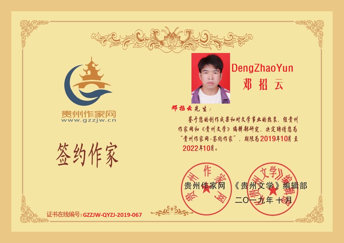 2019年10月19日,贵州青年作家邓招云成功签约贵州作家网。