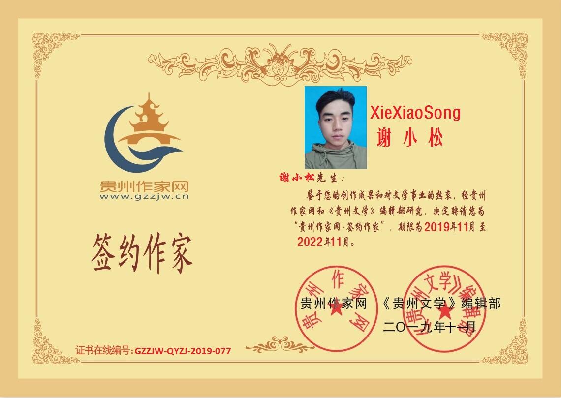 2019年11月16日,贵州土家族青年诗人谢小松成功签约贵州作家网。