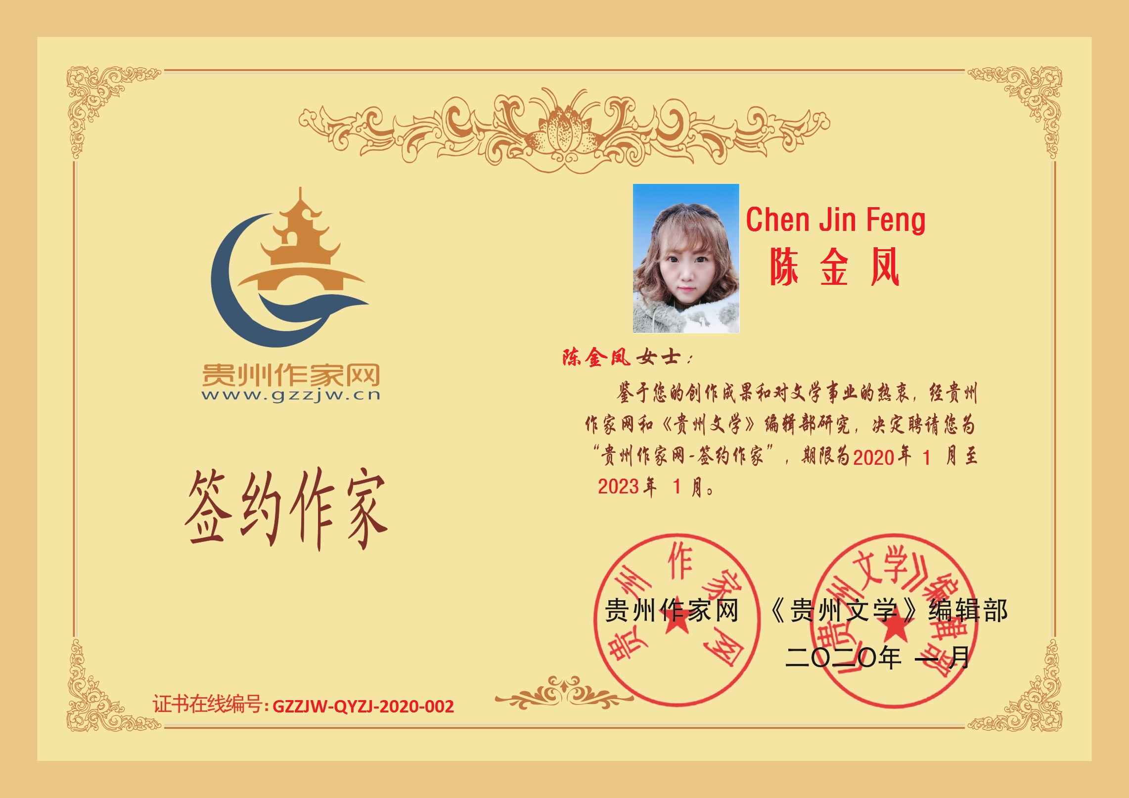 2020年1月15日,重庆女作家陈金凤成功签约贵州作家网。