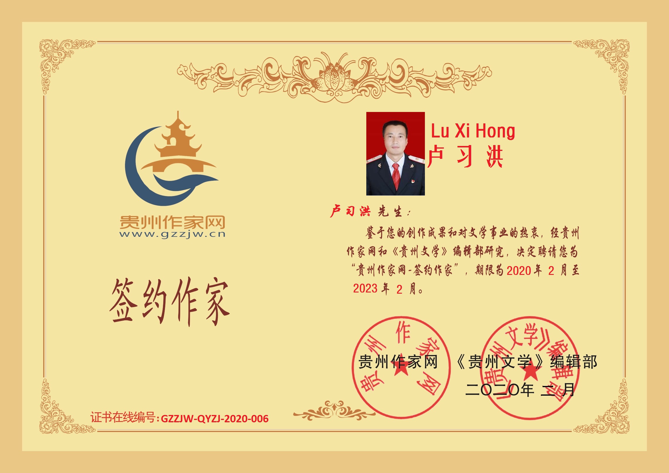 2020年2月12日,贵州省湄潭县作家卢习洪成功签约贵州作家网。