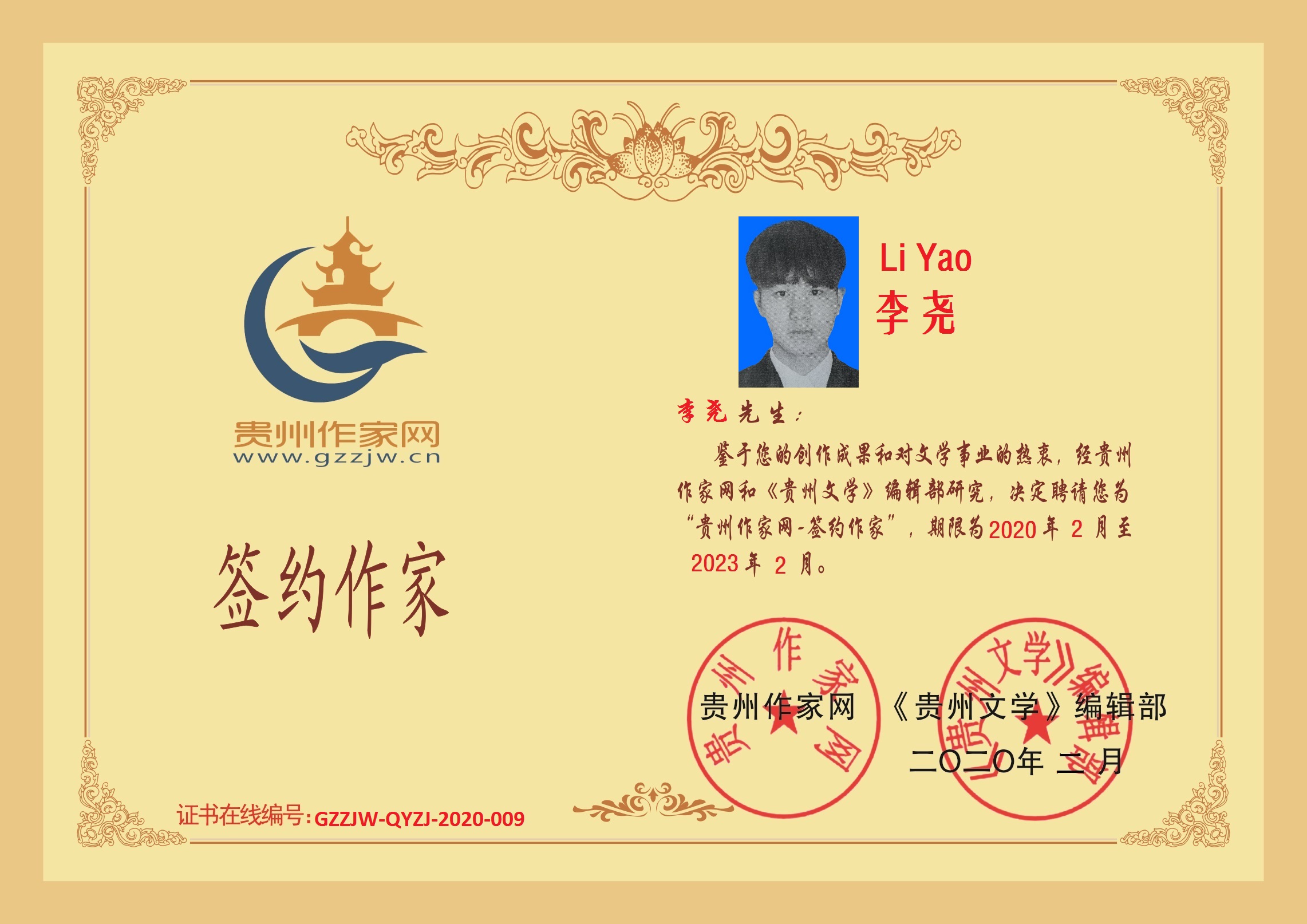 2020年2月25日,贵州省纳雍县穿青作家李尧成功签约贵州作家网。
