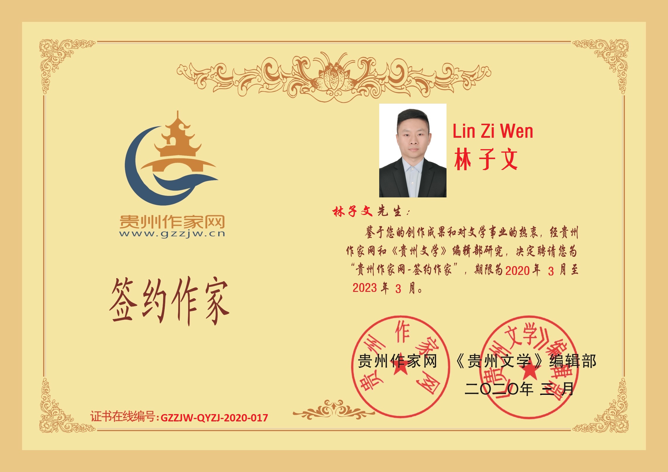 2020年3月25日,四川省南充市仪陇县作家林子文成功签约贵州作家网。