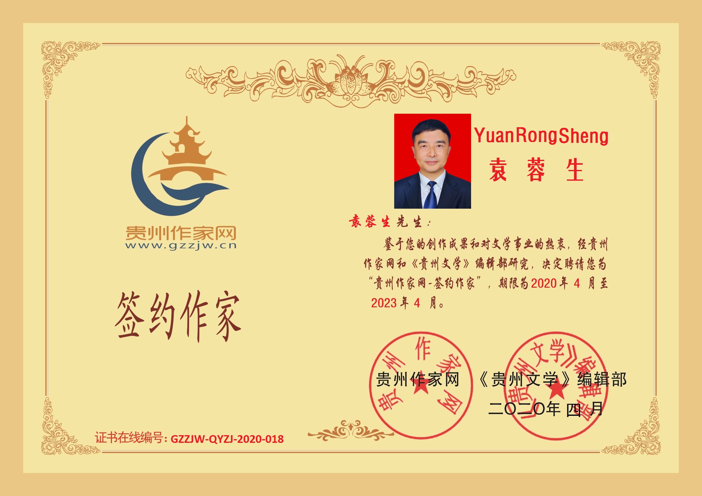 2020年4月8日,中铁五局作家袁蓉生成功签约贵州作家网。
