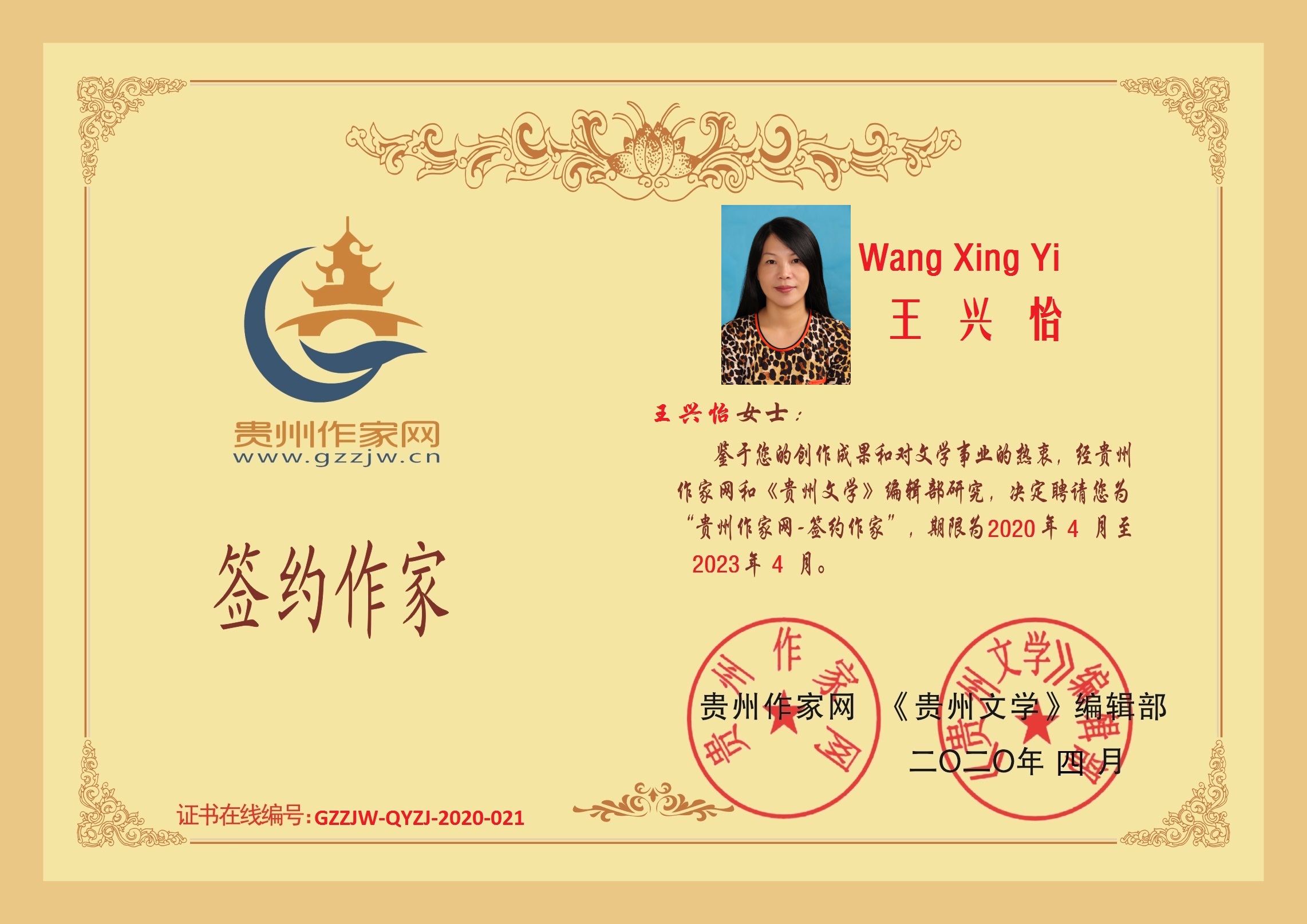 2020年4月20日,贵州遵义女作家王兴怡成功签约贵州作家网。
