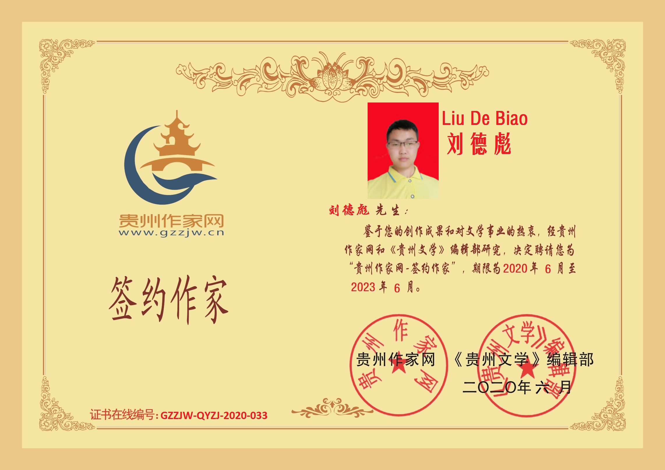 2020年6月5日,贵州省铜仁市侗族00后作家刘德彪成功签约贵州作家网。