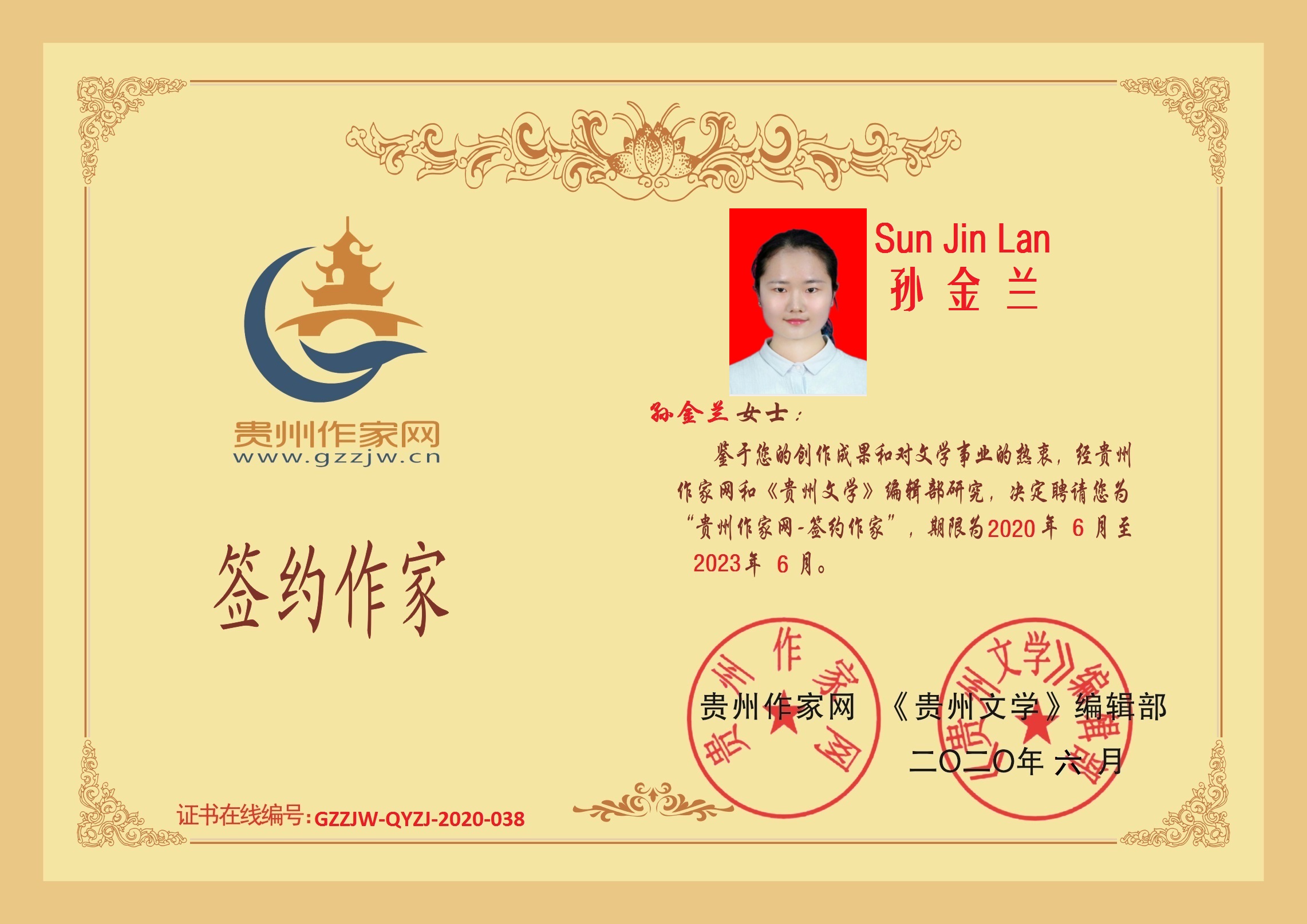 2020年6月20日,贵州省遵义市青年女作家孙金兰成功签约贵州作家网。