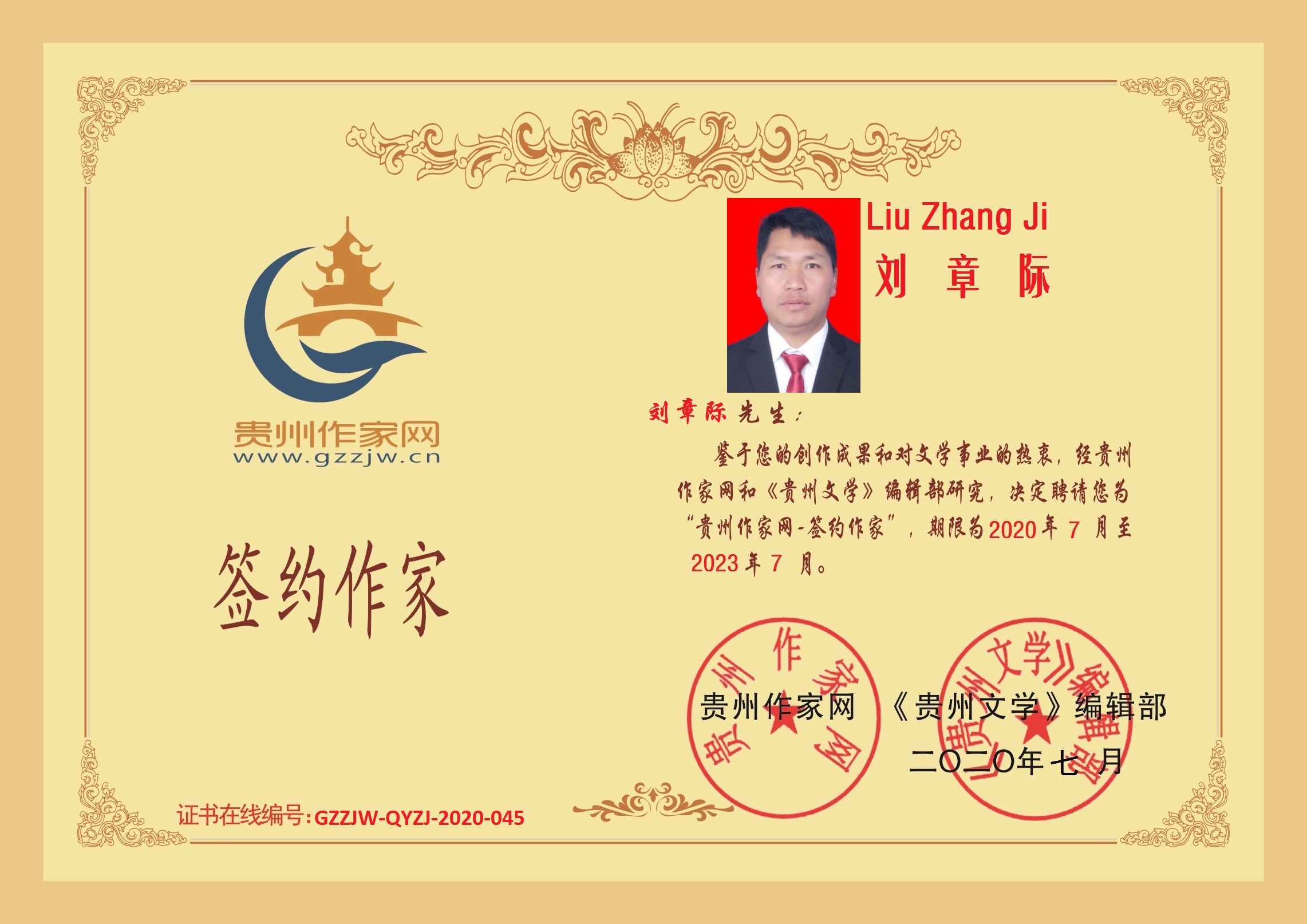 2020年7月13日,贵州省黔南州布依族作家刘章际成功签约贵州作家网。