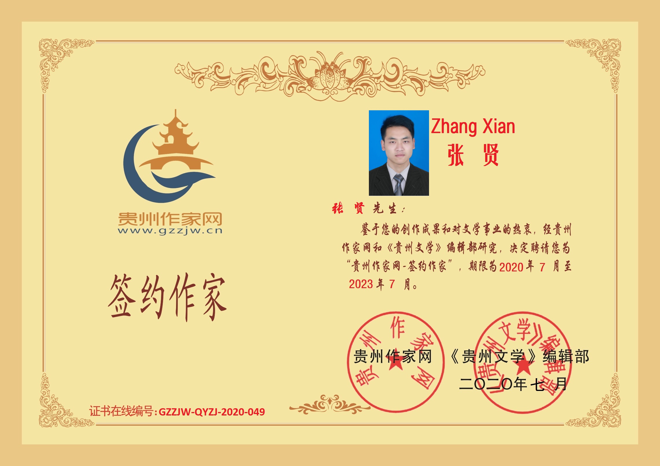 2020年7月21日,贵州省遵义仡佬族作家张贤成功签约贵州作家网。