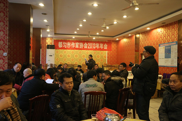 1月12日,“都匀市作家协会2013年年会”隆重召开。会上,对“2013年年度优秀创作奖”会员刘功明和广向阳以及“2013年度优秀会员”冉隆甫和顾先福进行了表彰和奖励;同时还举行了都匀本土作家刘兴汉处女作自传体长篇小说《浴火重生之炼狱》品读会,旅居柬埔寨十余年的都匀本土作家赵军及旅居北京十余年的都匀本土作家杨匀泉文学创作坐谈会。新会员代表曾健蓉、莫国虹、张仁远、朱锡荣、韦禹、张志学先后作了激情洋溢的发言。贵州省作家协会会员、民进贵州省委文化出版委副主任、贵州黔民阅读文化有限公司总经理刘才华和贵州天和坊双赢记酒业有限公司黔南办事处黔南总代理韦德吉友情赞助本次年会。