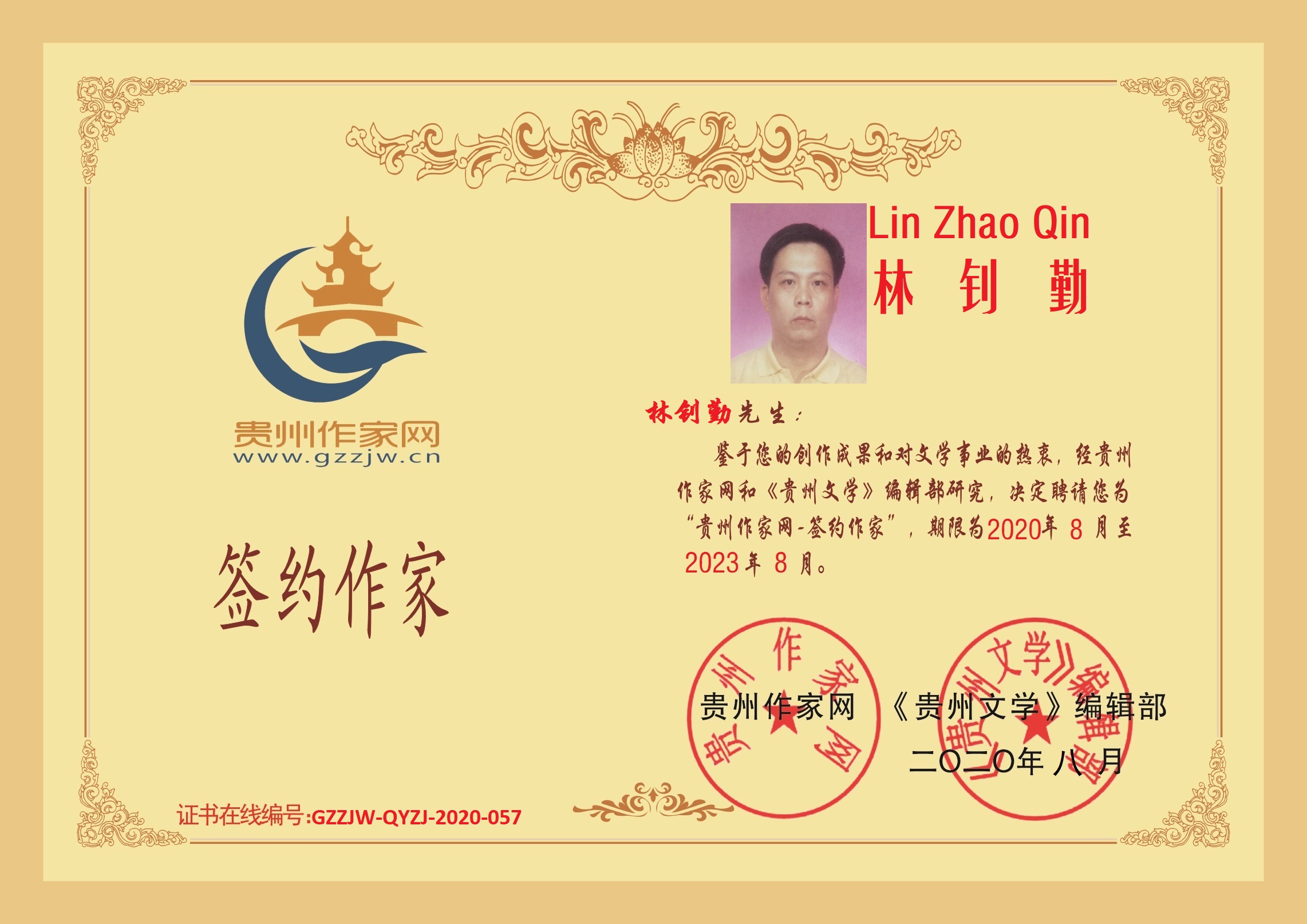 2020年8月10日,广东省汕头作家林钊勤成功签约贵州作家网。