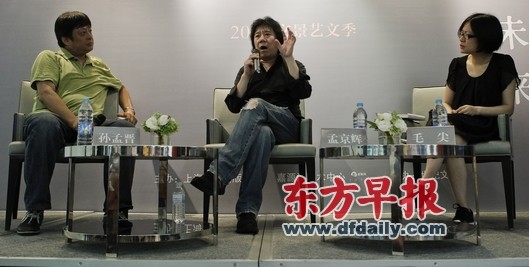 毛尖在一边笑着补充,“也有不和你们玩的年轻人,比如郭敬明。”孟京辉忙说,那也算是温和的。孙孟晋则说,他们这种不能算是对抗,“其实我觉得现在年轻作家之所以都和上一辈以一种温和的方式相处,可能因为他们过早进入了温室,比如都是从某某某作文大赛冒出来的。今天的年轻人,生存技巧可能更多地影响了人与人的关系。”