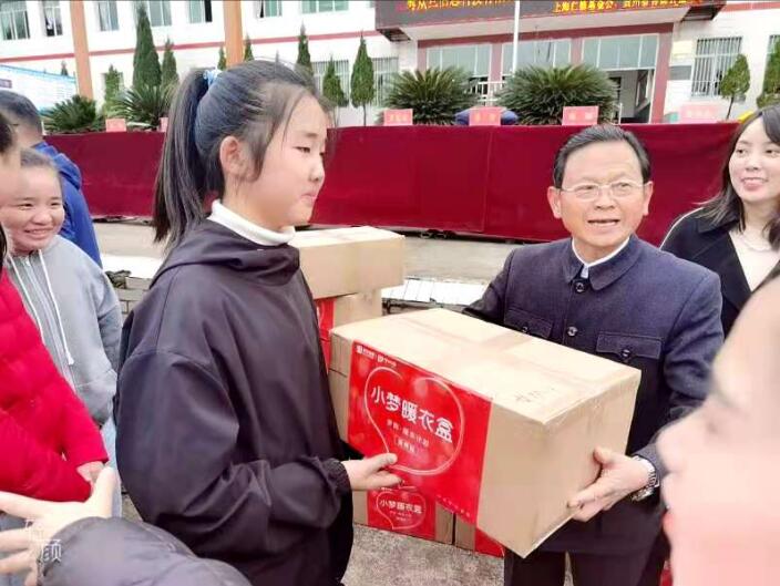 镇关工委主任黄成良给困难学生送暖衣
