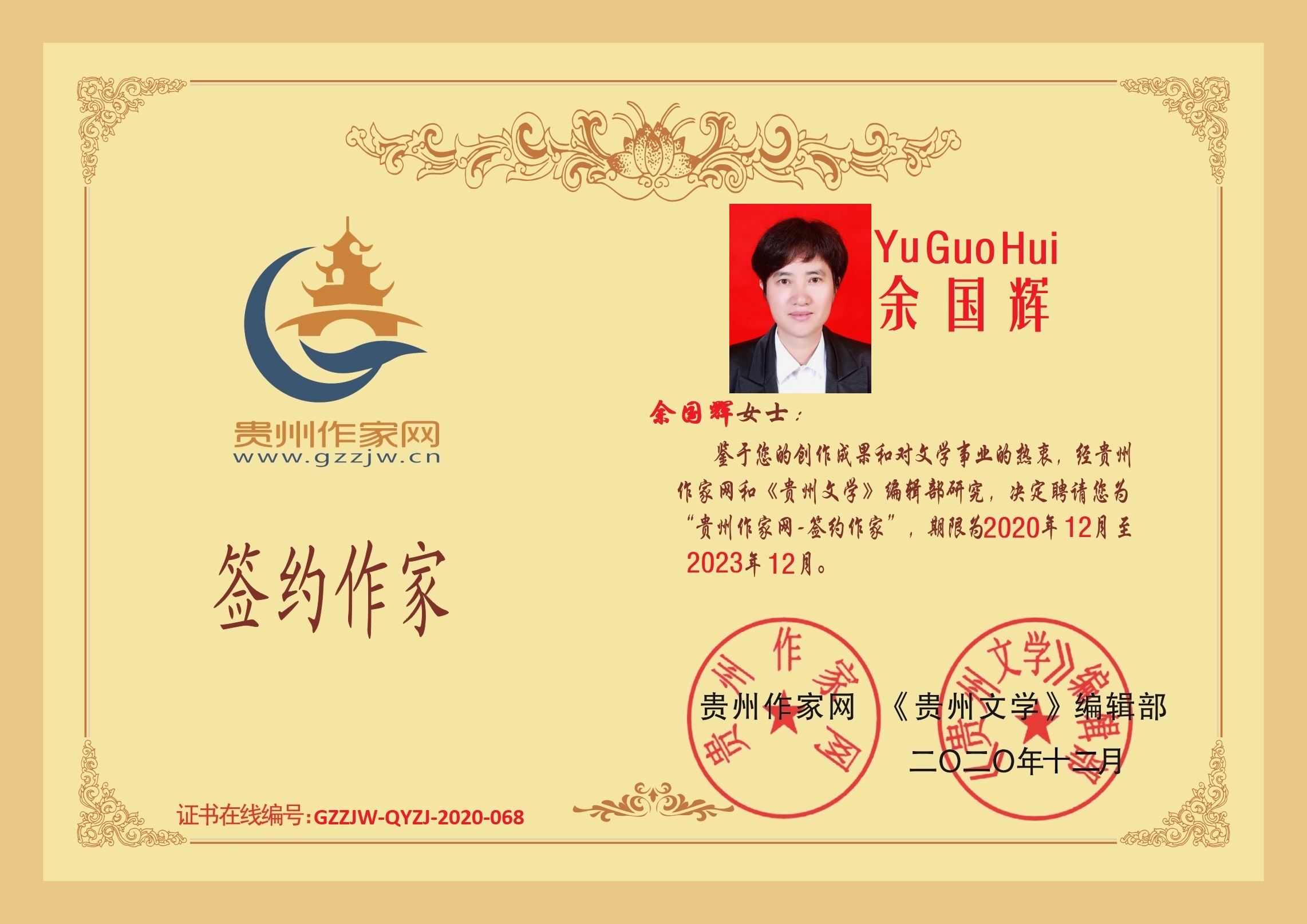 2020年12月6日,贵州省六盘水市苗族女作家余国辉成功签约贵州作家网。