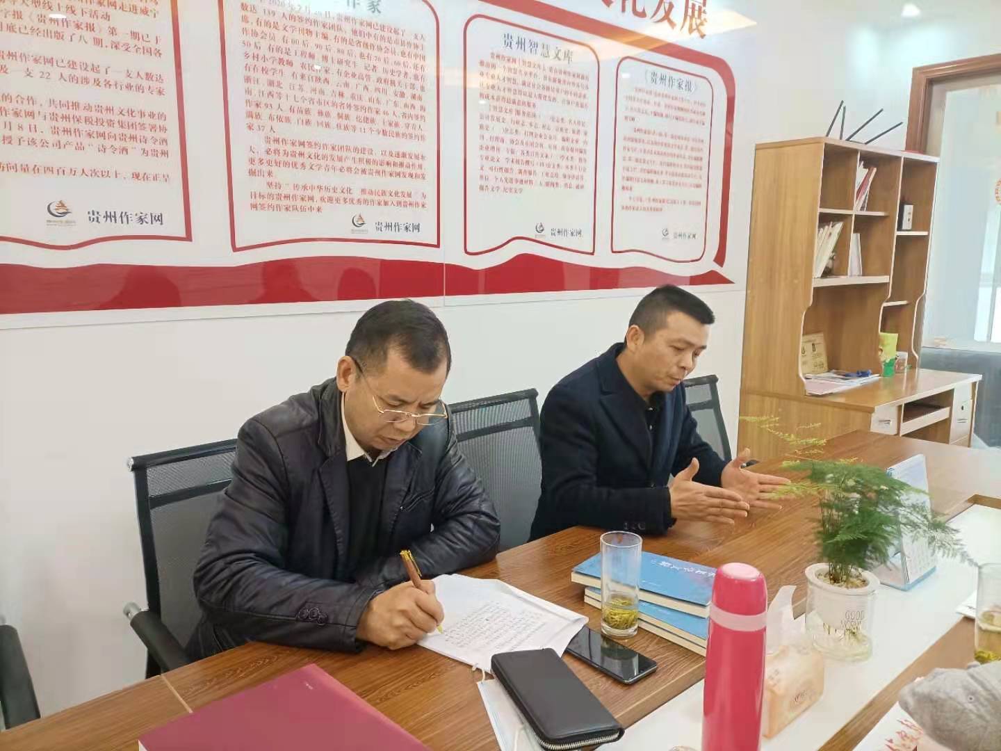 贵州作家网执行主编郭太东介绍了贵州作家网的基本情况,并就建设和发展过程中遇到的问题向两位领导作了汇报。