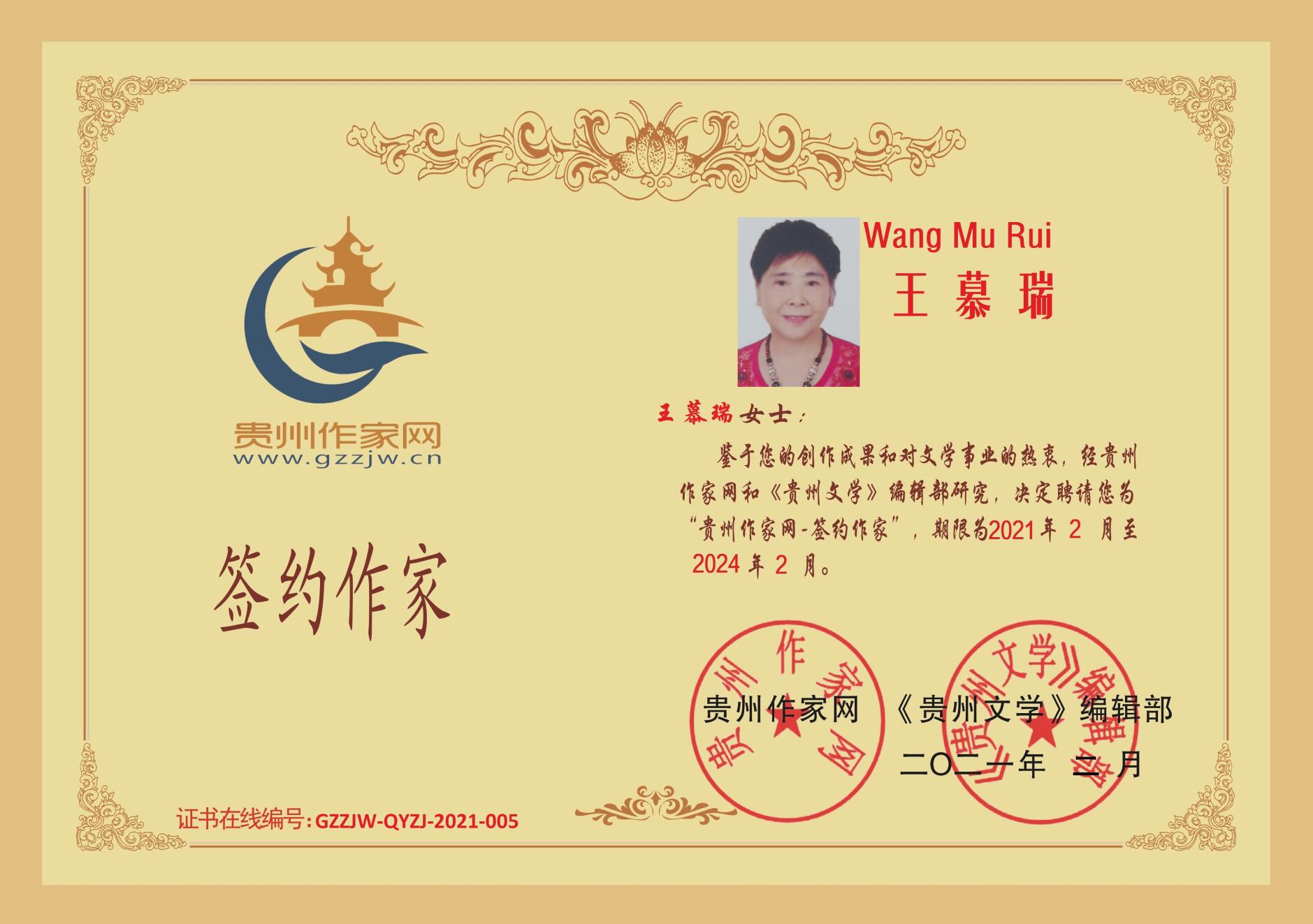 2021年2月19日,贵州省高级记者王晓瑞成功签约贵州作家网。