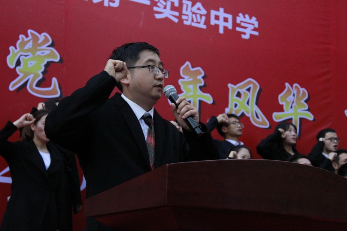 “肩负使命,永不放弃......甘为人梯,培育栋梁......尽我心血,誓夺辉煌......”“勇于拼搏,不负青春......”师生们铿锵有力的宣誓表达了破釜沉舟、攻克中考的决心。