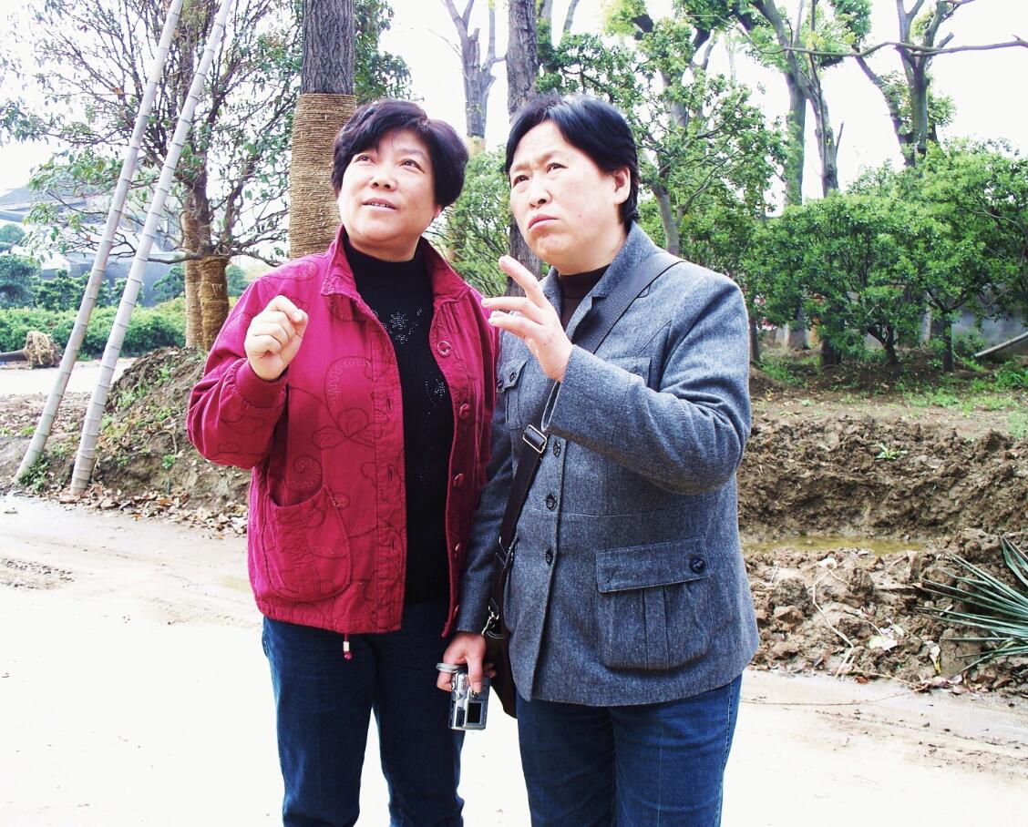 (图1,左为林慧敏校长,右为孙桂英副校长,这是她们利用星期天去常州园林大世界选树时的情景。 )