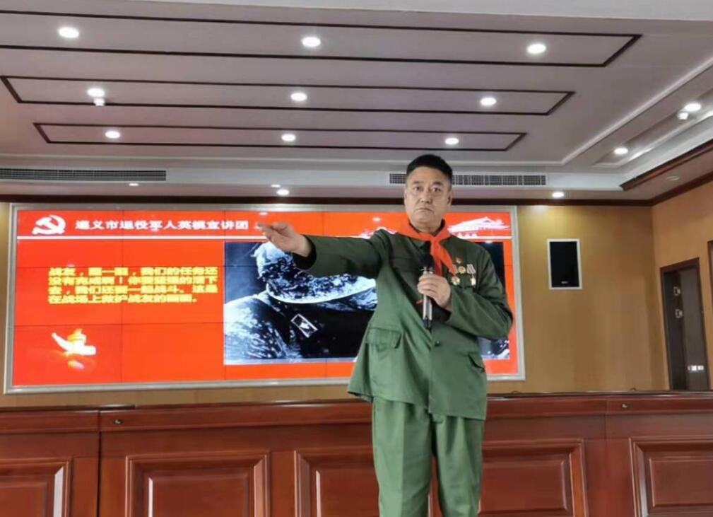 牢记习近平总书记“传承红色基因,讲好遵义故事”的殷切嘱托, 4月21日,新蒲新区新舟小学举办以“听英雄爷爷讲故事,做新时代中国好少年”为主题的退役军人英模宣讲活动,遵义市爱国拥军促进会英模宣讲团应邀请派出杜昌明、罗仕权、杨甫成、母明灿四位宣讲员到校宣讲。