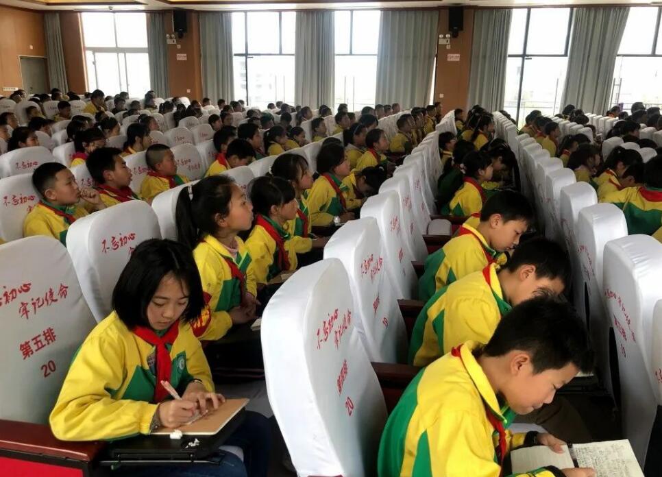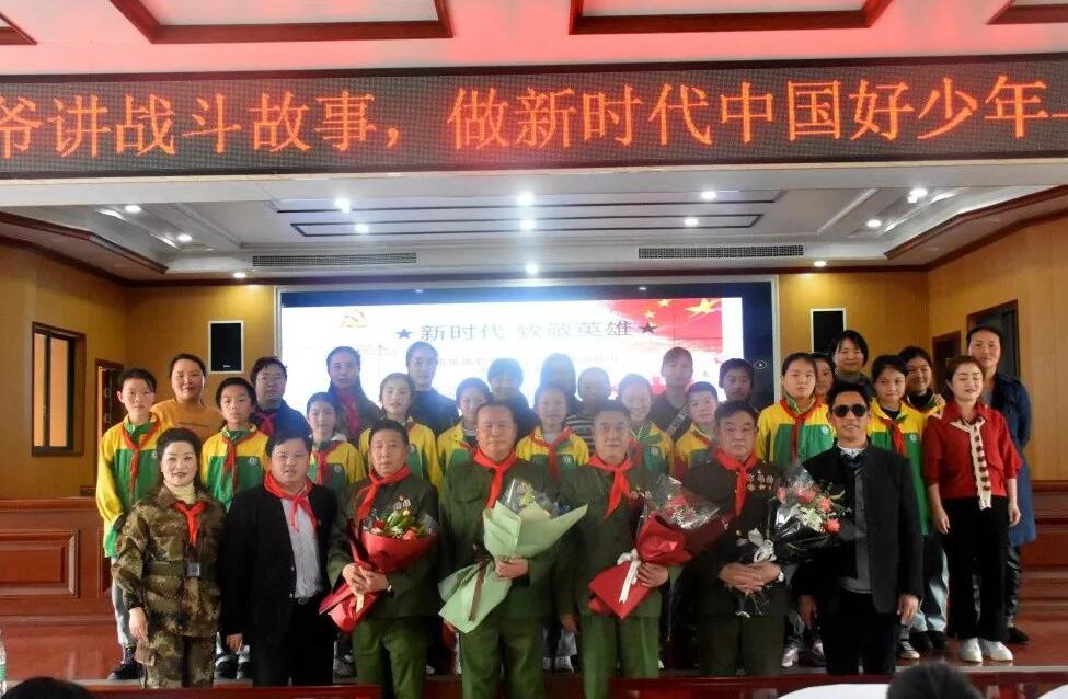 二等功杜昌明同志饱含深情讲述他们的峥嵘岁月,用真挚朴实的语言讲述了在对越自卫反击战中烽火连天的战斗故事,讲述了他与战友不畏牺牲主动请缨求战的顽强精神,讲述了副连长倒在自己怀中牺牲时,仍然手指着前方,示意战友们要继续前进的感人场面。杜昌明功臣讲到新舟小学是他曾经的母校,来到熟悉的校园,儿时的记忆一幕幕呈现,心中无比的激动和怀恋。三十分钟的讲述,孩子们一边听一边记录,用心感悟跌宕起伏的故事情节,眼中透露出敬佩和崇拜,热烈的掌声不断响起。最后,全场师生齐唱《中国少年先锋队队歌》,将本次活动推向高潮。