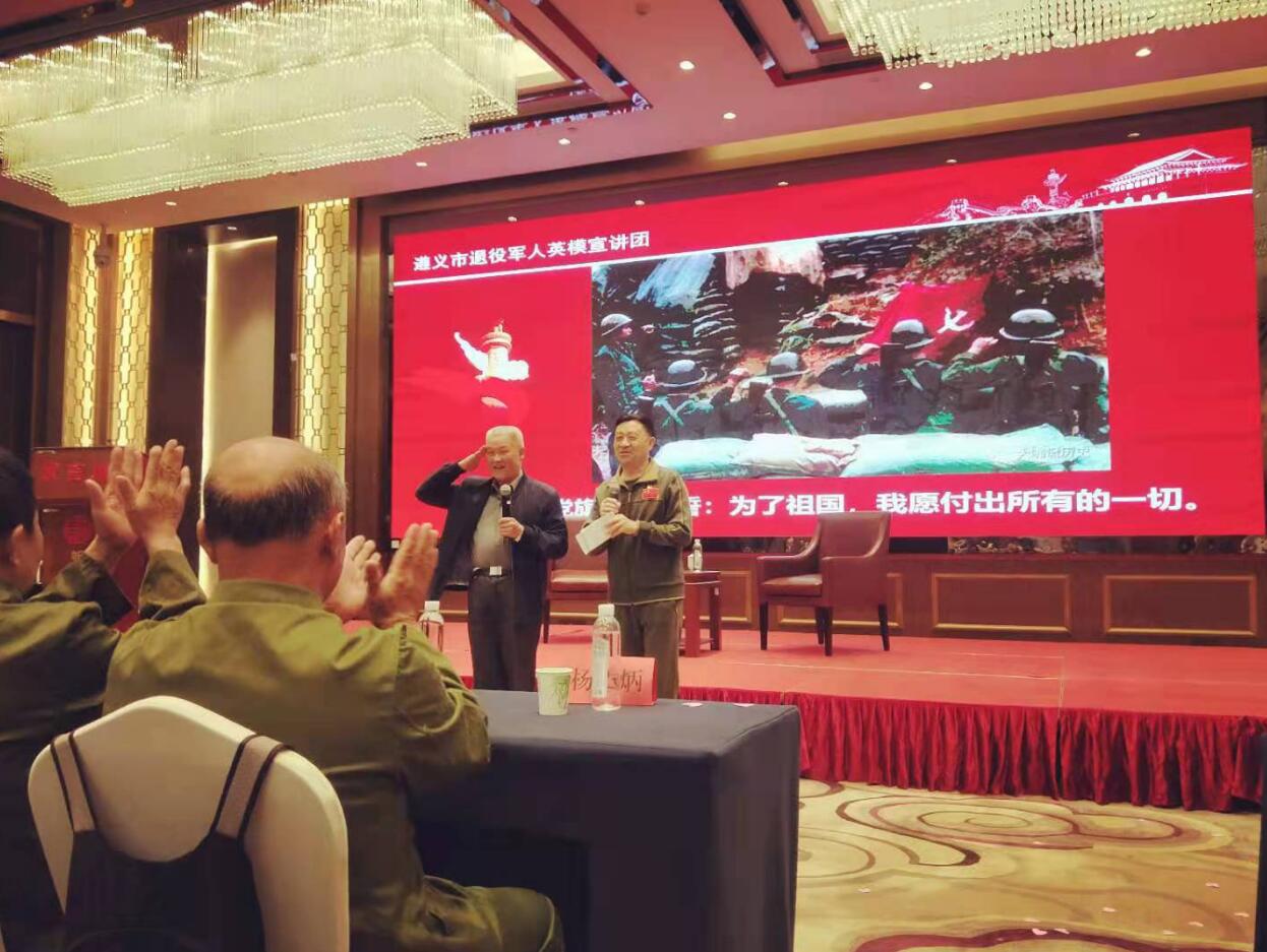 遵义市爱国拥军促进会派出二等功臣杨成炳、杜昌明、杨甫成参加宣讲,活动在雄壮的国歌声中拉开序幕。家有健康的护士为三位功臣敬献了鲜花。